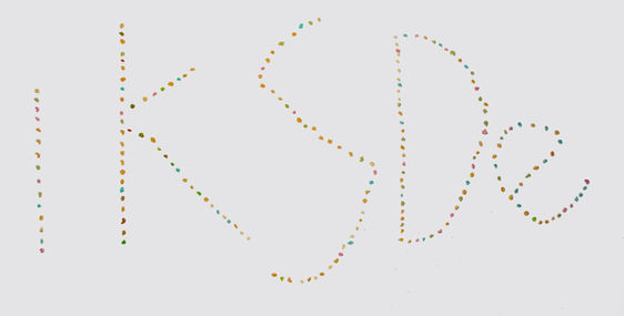 Przykleiłam wyżute gumy do ściany tworząc napis 'iksde'. Obok znajdował się powyższy napis oraz świeże gumy dla obecnych na wernisażu. Odbiorcy dołączali się do pracy i doklejali swoje wyżute gumy.